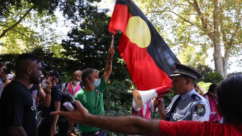 وتجمع حوالي 3000 شخص في سيدني في مسيرة “يوم الغزو” بالرغم من تهديد الشرطة في وقت سابق بشن اعتقالات جماعية إذا تجاوزت الحشود الحد الأقصى البالغ 500 شخص بسبب جائحة فيروس كورونا.