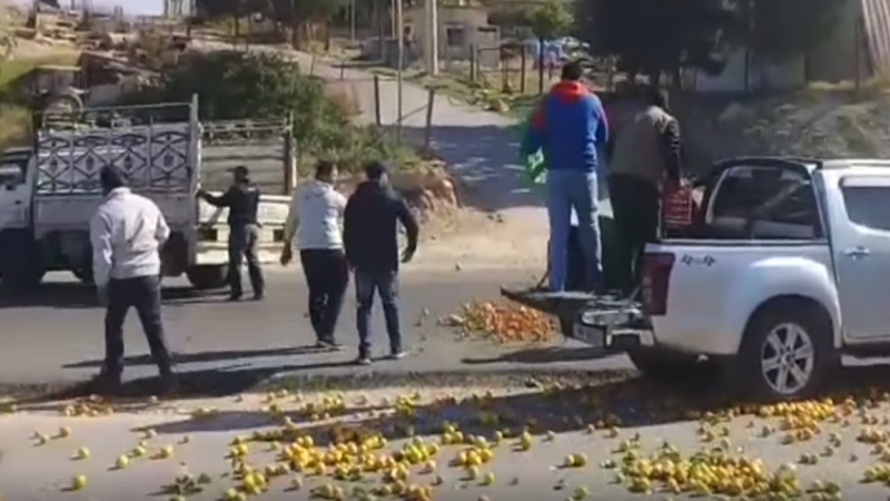 ألقى مزارعون أردنيون حمضياتهم في الشارع الرئيسي بالغور الشمالي، احتجاجا على تدفق الحمضيات السورية إلى الأسواق وبكميات قالوا إنها "هائلة"، رغم فائض الإنتاج المحلي.