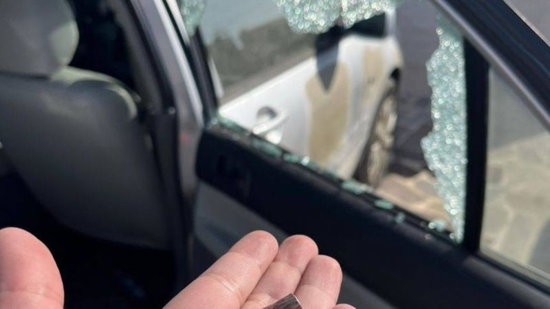 وقد نشر نائل قوقزة صورًا للسيارة التي تعرضت للإصابة جراء اختراق الرصاصة الطائشة لزجاجها.