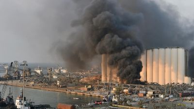 ويفيد تقدير حكومي أولي بأن ما حدث هو انفجار “مواد شديدة التفجير” في أحد مستودعات المرفأ.