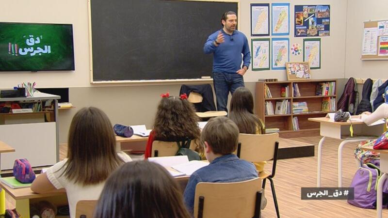 وفي حلقة من برنامج "دق الجرس" على فضائية "إم تي في"، حضر الحريري إلى غرفة تشبه الفصل المدرسي، وأمامه مجموعة من الأطفال، ليجيب على أسئلتهم.