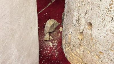 وأرفقت الدائرة تدوينتها بصورة وشريط فيديو قصير، يُظهر تساقط حجارة في المسجد الأقصى القديم.