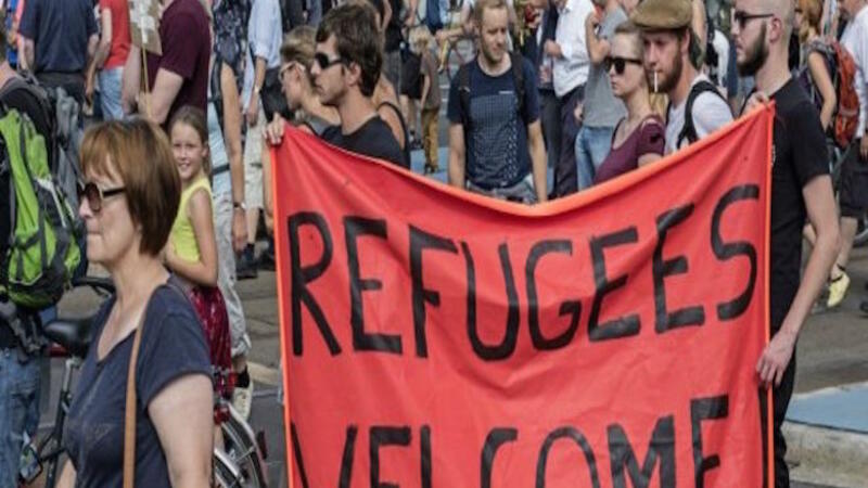 شكّل آلاف الألمان سلاسل بشرية احتجاجاً على العنصرية في عدد من المدن الكبرى اليوم الأحد، رداً على موجة من الجرائم المدفوعة بالكراهية ضد الأجانب، بعد وصول ما يربو على مليون مهاجر إلى ألمانيا العام الماضي.