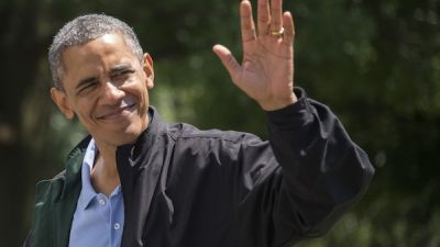 ونزل أوباما من الطائرة والابتسامة تعلو محياه، تحت زخات المطر، ماسكاً مطرية، رفقة زوجته ميشيل وابنتيه ماليا (17 عاماً) وساشا (14 عاماً).