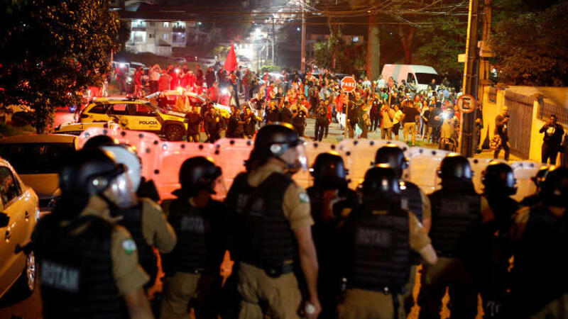 وتجمع أنصار الرئيس الأسبق، أمام مقر نقابة عمال التعدين في مدينة سان برناردو دو كامبو، حيث أقام لولا دا سيلفا منذ يومين، محاولين منعه من تسليم نفسه للأجهزة الأمنية، التي لجأت لاستخدام الرصاص المطاطي والقنابل الصوتية ضدهم.