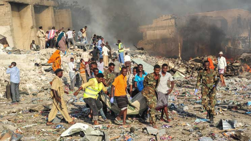 وفي تصريح للإذاعة الوطنية، وصف الرئيس الصومالي محمد عبد الله محمد الهجوم بأنه مأساة وطنية، ودعا الشعب إلى مساعدة الضحايا بالتبرع بالدم.