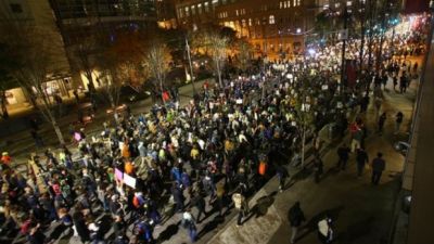 تظاهر الآلاف في العديد من المدن الأمريكية، احتجاجا على فوز الجمهوري دونالد ترامب بالانتخابات الرئاسية، فيما أسفر إطلاق رصاص قرب أحد مواقع الاحتجاجات، في مدينة سياتل، عن إصابة خمسة أشخاص جراح أحدهم خطيرة.