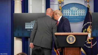 قاطع ضابط من جهاز الخدمة السرية مؤتمرا صحفيا للرئيس الأميركي دونالد ترامب واصطحبه إلى خارج قاعة المؤتمر بعد إطلاق نار خارج البيت الأبيض، ثم عاد الرئيس بعد دقائق ليعلن للصحفيين أن الوضع تحت السيطرة.
