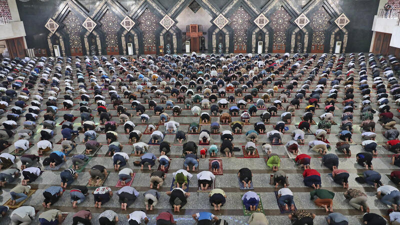 عاد الإندونيسيون في العاصمة جاكرتا إلى المساجد يوم الجمعة لأداء صلاة الجمعة بعدما خففت المدينة قواعد ارتياد دور العبادة في إطار رفع بعض القيود المطبقة منذ نهاية مارس آذار للحد من انتشار فيروس كورونا.
