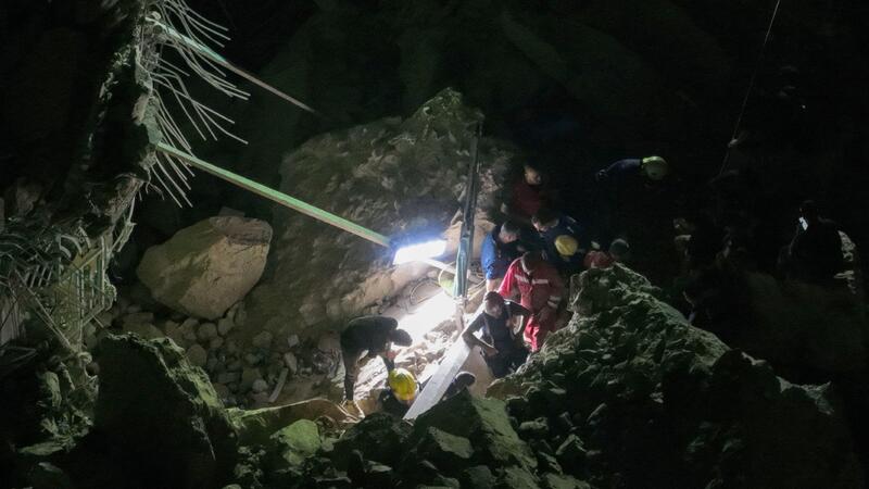 لحظة انتشال عراقيين بعد انهيار كبير في "مزار قطارة" غرب #كربلاء فيما لا تزال الفرق تواصل عمليات الإنقاذ بحثا عن آخرين#العراق#العربية pic.twitter.com/lYggVs6Igg