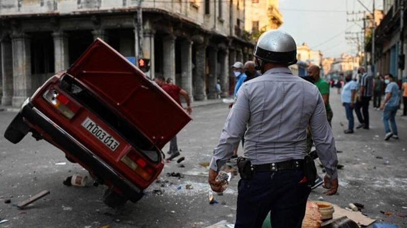 وشهدت بعض مدن كوبا يوم 11 يوليو مظاهرات قالت وسائل إعلام محلية إن المشاركين فيها أثاروا أعمال شغب ونهبوا محلات تجارية.