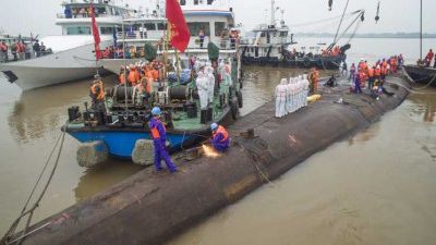 ووفق ما ذكرته الوكالة، قام رجال الإنقاذ بإحداث فتحة مستطيلة يوم أمس الأربعاء، في الجزء السفلي من السفينة السياحية التي غرقت، الإثنين الماضي، في نهر اليانغتسي الصيني، وكانت تقل على متنها مئات الركاب، وذلك بهدف تسهيل مهمة انتشال الجثامين، والتي تواجه صعوبات بسبب الأحوال الجوية.