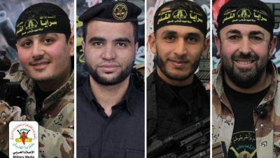 أعلنت سرايا القدس، الجناح العسكري لحركة الجهاد الإسلامي، عن استشهاد أربعة من عناصرها في انفجار وقع في حي الشجاعية (شرقي مدينة غزة). وقالت سرايا القدس، في بيان نشرته على موقعها الرسمي، إن العناصر الأربعة الذين قضوا في الانفجار هم: إياد جمال الجدي (42 عاماً)، ومعتز عامر المبيض (29 عاماً)، ويعقوب منذر زيدية (25 عاماً)، ويحيى فريد المبيض (23 عاماً).