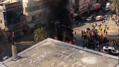 تغطية صحفية: "شبان يشعلون الإطارات للتشويش على قوات الاحتلال التي تحاصر أحد المنازل بالبلدة القديمة في نابلس".#فلسطين #نابلس pic.twitter.com/iR4q0RKQQG