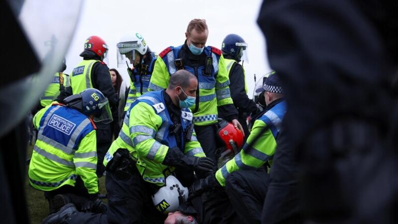 وقعت اشتباكات بين الشرطة البريطانية ومحتجين مناهضين للعزل العام جراء كورونا، خلال مسيرة في وسط العاصمة البريطانية لندن.