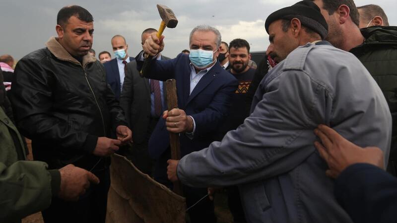 تعهد رئيس الوزراء الفلسطيني محمد اشتية يوم الخميس، في حضور دبلوماسيين أوروبين خلال تواجدهم في تجمع حمصة الفوقا البدوي الذي هدمه الجيش الإسرائيلي يوم الاربعاء، بإعادة بناء التجمع.