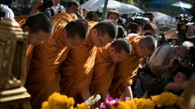 وادى حوالى عشرة رهبان بوذيين صلاة عند فتح المعبد واحاط بهم مؤمنون وكذلك سياح امام تمثال براهما كما افاد مراسل وكالة فرانس برس.