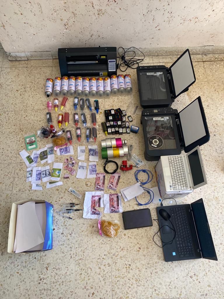 وبعد اعترافات العناصر المعتقلة توجهت قوة امنية الى مدينة العقبة وجرت مداهمه مكان المزور الرئيسي "وضبط داخل المكان عدد من الاوراق النقدية المزيفة وطابعات وأحبار واجهزة حاسوب محمول ومعدات تستخدم لتزييف العملة وستتم احالتهم جميعا لمدعي عام محكمة امن الدولة"