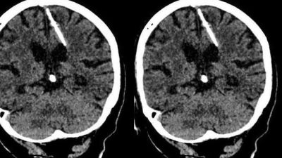 اكتشف اطباء روس بالصدفة ابرة طولها ثلاثة سنتمترات موجودة منذ ثمانين عاما داخل دماغ امرأة مسنة اثناء قيامهم باجراء فحص لها بالتصوير المقطعي.