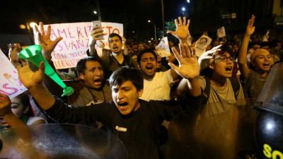 وواكبت فرقة من شرطة مكافحة الشغب المتظاهرين في شوارع ليما، وسعت إلى منعهم من التوجه إلى المستشفى حيث يخضع فوجيموري للعلاج.