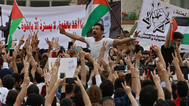 ورفض المحتجون "انتهاكات الاحتلال الإسرائيلي في المسجد الأقصى وحي الشيخ جراح"، وفق ما أفادت وكالة "عمون" الإخبارية الأردنية.
