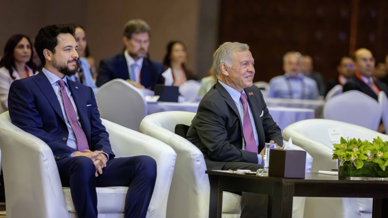 حضر جلالة الملك عبدالله الثاني وسمو الأمير الحسين بن عبدالله الثاني ولي العهد، الأربعاء، الجلسة الرئيسية للقمة الإقليمية للمحيطات، التي عقدت في مركز الملك الحسين بن طلال للمؤتمرات بمنطقة البحر الميت.