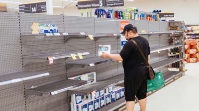 ودفع التزاحم على سلع معينة متاجر التجزئة الكبرى إلى فرض حدود على حجم المشتريات لضمان ألا تخلو الأرفف من هذه السلع.