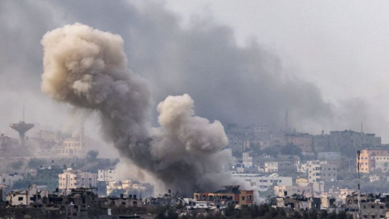 الدخان يتصاعد بعد غارة إسرائيلية على قطاع غزة. 11 تشرين الثاني، 2023م. وكالة الصحافة الفرنسية