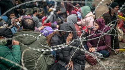 وقالت المنظمة الدولية للهجرة في بيان إن "آلاف المهاجرين، وبينهم عائلات وأطفال، يقضون ليلة باردة على الحدود بين تركيا واليونان".