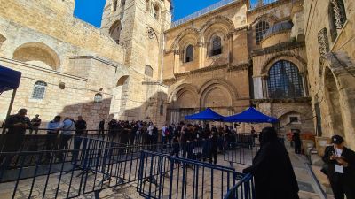 اعتدت قوات الأمن الإسرائيلية، اليوم السبت، على عشرات المصلين المسيحين عند "باب الجديد" وداخل أزقة البلدة القديمة، قرب كنيسة القيامة في مدينة القدس الشرقية المحتلة؛ وذلك خلال محاولتهم الوصول إلى الكنيسة لإحياء عيد "سبت النور".
