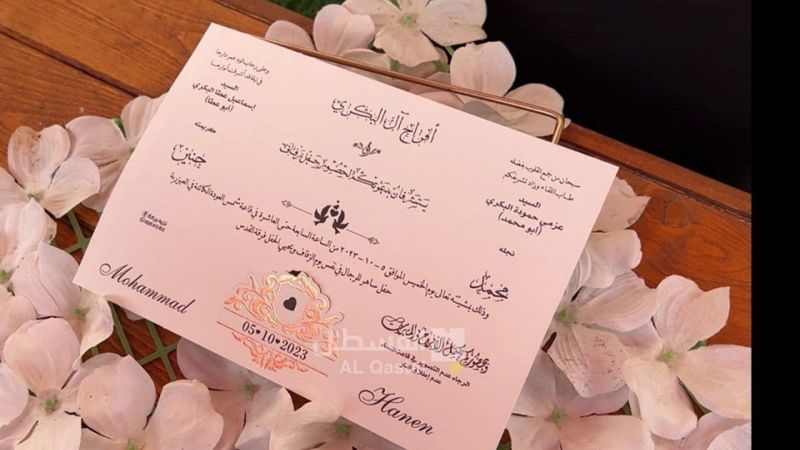 عرضت والدة الأسير محمد البكري بدلة عرسه وبطاقة دعوة زفافه الذي كان مقرراً غداً الخميس، لكن الاحتلال اعتقله وحدد موعد محاكمته في يوم زفافه.