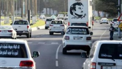 صور أمير قطر الشيخ تميم بن حمد آل ثاني على السيارات في أحد شوارع الدوحة
