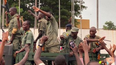 وقال أحدهم قدم نفسه بأنه الناطق باسم العسكريين الكولونيل اسماعيل واغي، مساعد رئيس أركان سلاح الجو: “نحن، قواتنا الوطنية المجتمعة داخل اللجنة الوطنية لإنقاذ الشعب، قررنا تحمل مسؤولياتنا أمام الشعب وأمام التاريخ”.