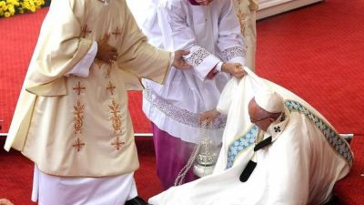 البابا فرنسيس يقع أرضاً خلال قداس في بولندا (فيديو)