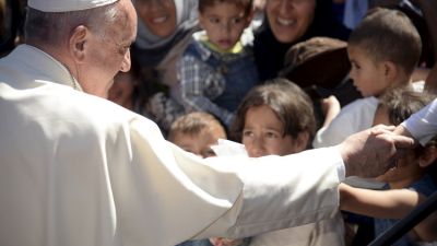 وجاءت زيارة البابا فرنسيس، لجزيرة ليسبوس في إطار إعادة تأكيده على تضامنه مع اللاجئين. ووصف البابا رحلته بأنها "مختلفة قليلا عن الرحلات الأخرى. رحلة يشوبها الحزن" وقال "سنواجه أسوأ كارثة إنسانية منذ الحرب العالمية الثانية".