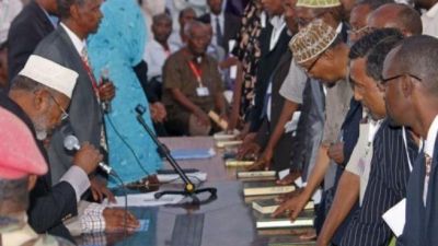 واختير نحو 260 من اعضاء البرلمان البالغين 275 عضوا، ادى معظمهم اليمين الدستورية الاسبوع الماضي في مدرج مطار العاصمة الذي تحميه قوات الاتحاد الافريقي.