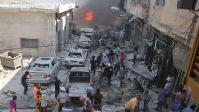 وكان التلفزيون السوري ذكر أن التحالف ضرب حي القصور الذي تسيطر عليه الحكومة فقتل 14 مدنياً وأصاب 22 يوم الاثنين.