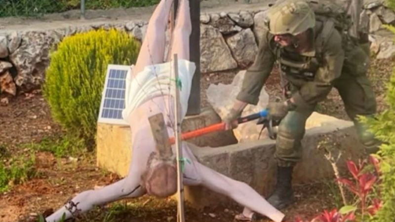 أقرّ الجيش الإسرائيلي بصحة مقطع فيديو يُظهر أحد جنوده وهو يحطّم تمثالًا للسيد المسيح في بلدة دير سريان جنوب لبنان، وذلك عقب كشف صحيفة "هآرتس" العبرية عن الحادثة.