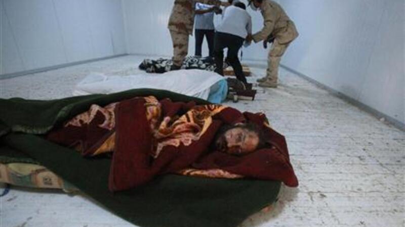 وأعلن مقتل المعتصم في اليوم نفسه. ولم يظهر في التغطية التي بثت حتى الان سوى جثته في سترة بيضاء.