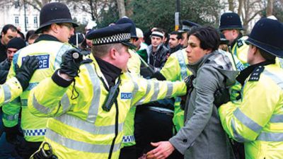 واعتقلت الشرطة البريطانية 22 سوريا خلال مظاهرات جديدة أمام سفارة بلدهم في لندن، عقب تواتر تقارير عن مقتل أكثر من 200 شخص بقصف تعرضت له مدينة حمص.
