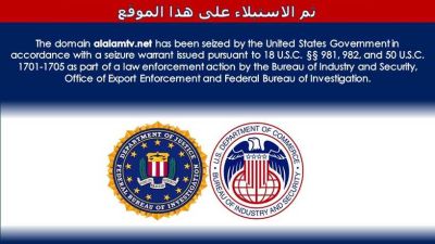 وعند الدخول إلى مواقع إلكترونية إيرانية مثل موقع "العالم" و"الكوثر" الإخباريين، وموقع "المسيرة" التابع للحوثيين اليمنيين وموقع كتائب حزب الله العراقية ومواقع أخرى فإنه توجد صفحة على شكل صورة تقول إن الموقع تمت مصادرته من قبل الحكومة الأميركية.