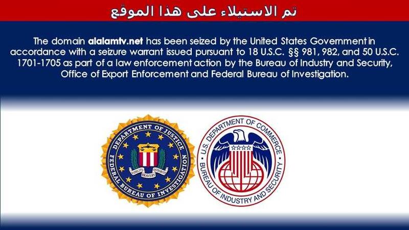 وجاء في البيان: "واجه زوار المواقع عبارة تقول بأنه - تم الاستيلاء على موقع (العالم.نت) من قبل حكومة الولايات المتحدة، بناء على مذكرة حجز، كجزء من إجراء لإنفاذ القانون من قبل مكتب الصناعة والأمن وكتب إنفاذ قوانين التصدير ومكتب التحقيقات الفدرالي الأمريكي (أف بي أي)".