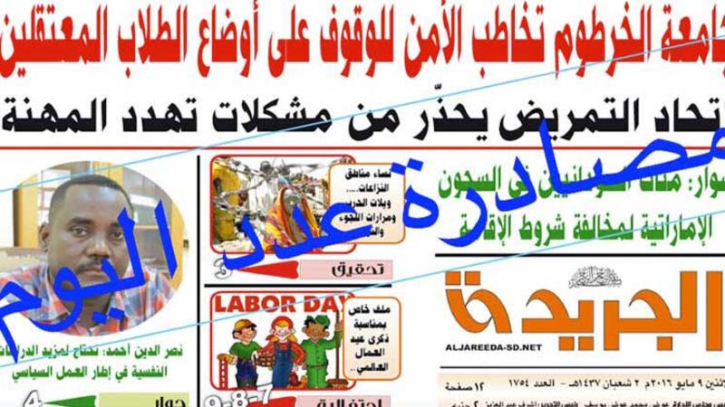 صادرت السلطات السودانية، السبت، النسخ المطبوعة لعدد اليوم من صحيفة الجريدة (مستقلة) عقب طباعتها مباشرة، دون إبداء الأسباب، بحسب رئيس تحريرها.