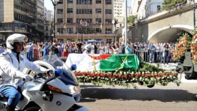 وحمل النعش على اكتاف ثمانية ضباط من الجيش، الى مكان اداء صلاة الجنازة بمقبرة العالية حيث يرقد رؤساء الجزائر المتوفون احمد بن بلة وهواري بومدين ومحمد بوضياف.