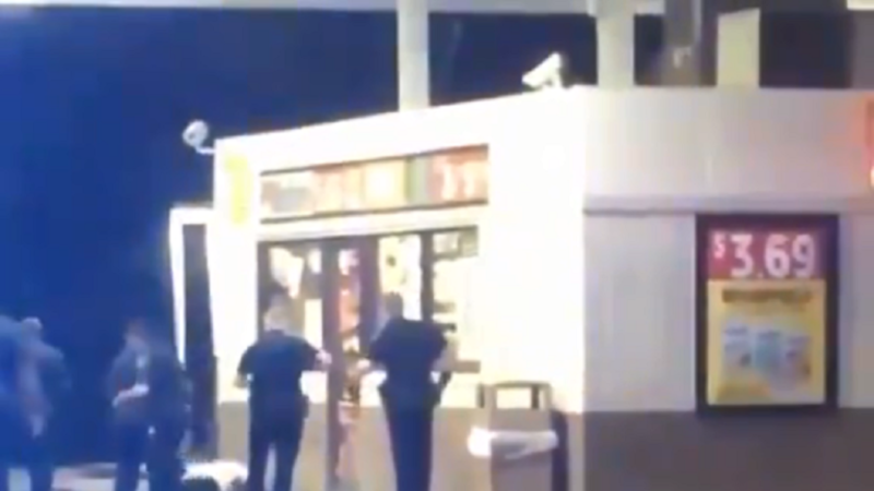 بدورها، قالت الشرطة إن فريقا من عناصرها وصل مساء الجمعة إلى متجر صغير في المدينة بعد استدعائه إلى المكان بسبب "اضطرابات شملت شخصا مسلحا بسكين".
