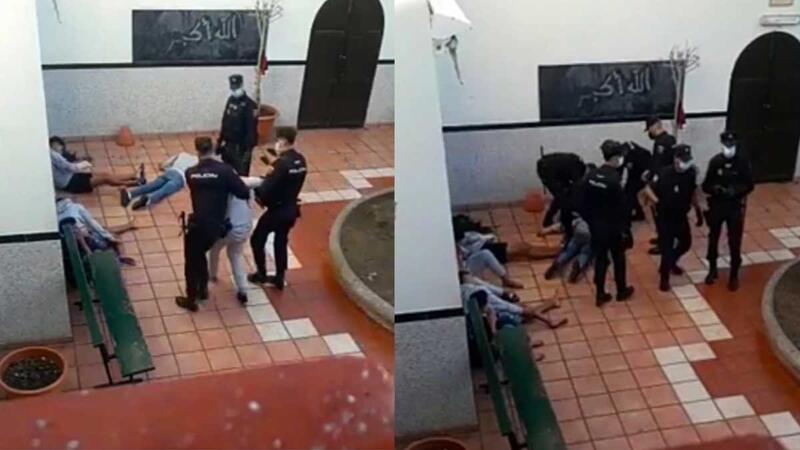 يوثق مقطع فيديو تداولته مواقع التواصل في المغرب الثلاثاء، تعرض مهاجرين للضرب بوحشية على يد الشرطة الإسبانية داخل باحة مسجد في مقاطعة لاس بالماس جنوب غربي اسبانيا.