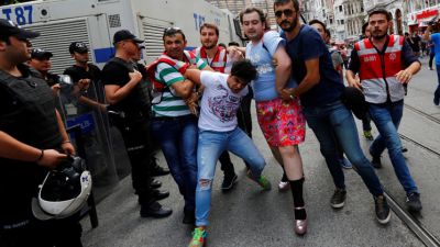 اعتقل نائبان المانيان، الاول في البرلمان الاوروبي والثاني في البرلمان الفدرالي، لوقت قصير الاحد في اسطنبول فيما فرقت شرطة مكافحة الشغب بالغاز المسيل للدموع تجمعا كان يحتج على الغاء المسيرة السنوية للمثليين، وفق مراسل فرانس برس.