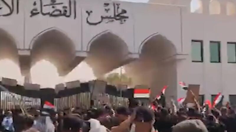 وفي ضوء اعتصام الصدريين أمامه، أعلن مجلس القضاء تعليق عمله وعمل المحاكم التابعة له.