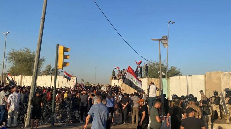 واقتحم متظاهرون، اليوم الأربعاء، المنطقة الخضراء وسط العاصمة بغداد قبل ان يقتحموا مبنى مجلس النواب العراقي احتجاجاً على ترشيح محمد شياع السوداني لمنصب رئاسة الوزراء.