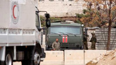 قالت اللجنة الدولية للصليب الأحمر في سوريا، إن قافلة إغاثة تضم 13 شاحنة تنتظر خارج الغوطة الشرقية لتسليم مساعدات غذائية للجيب الخاضع للمعارضة الجمعة.